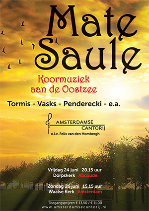 Home – Amsterdamse Cantorij – Kamerkoor in Amsterdam » Mate Saule juni 2016 Posted april 6, 2016 by admin.